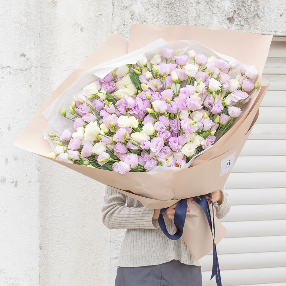 풍기는 화이트, 라벤더 리시안셔스를 한가득 안아보세요.