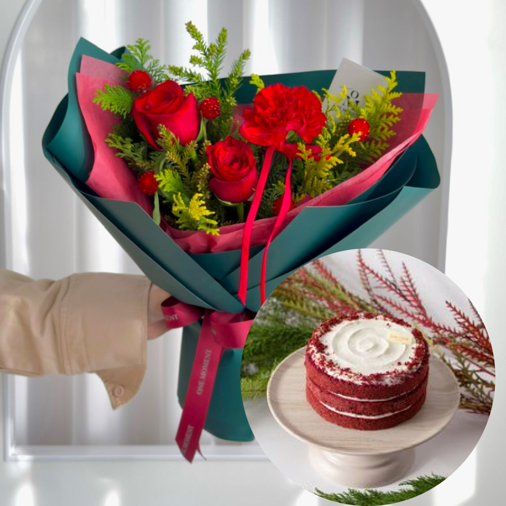 레드 페어리 꽃다발과 레드벨벳 케이크