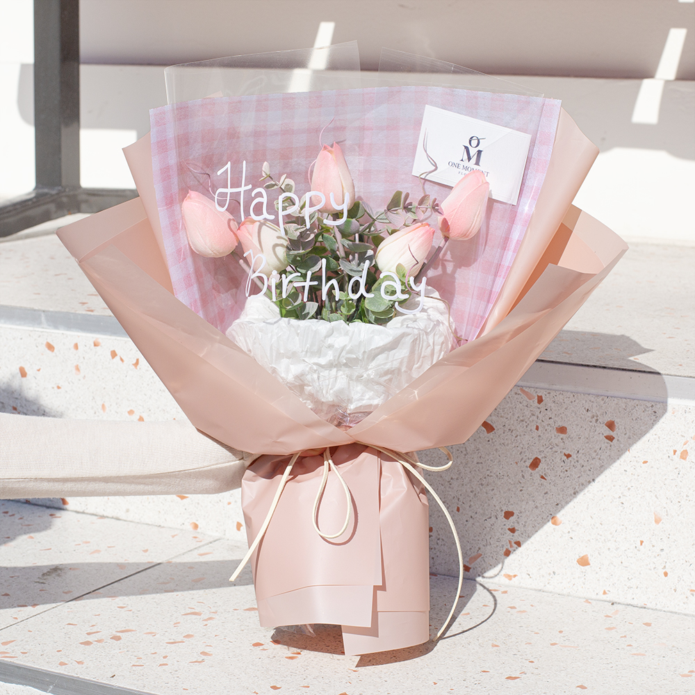 핑크튤립 레터링 꽃다발