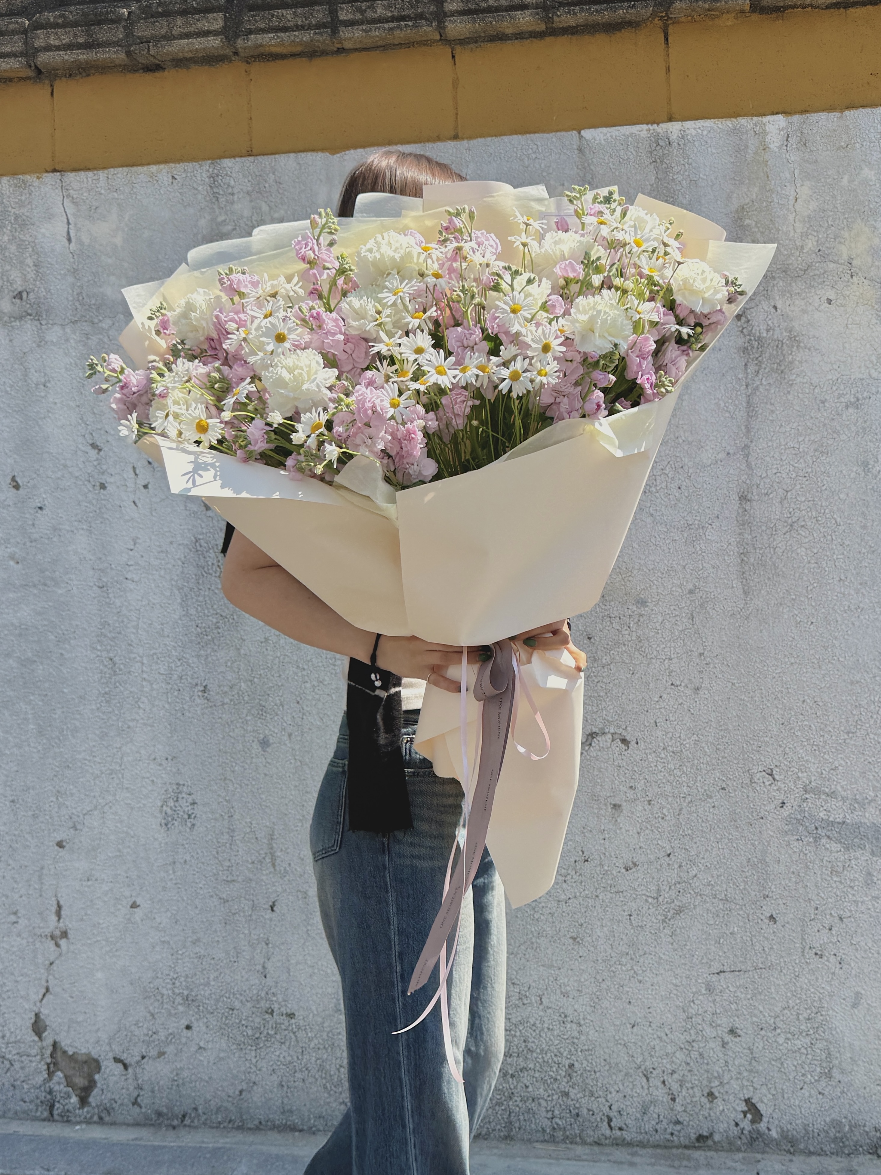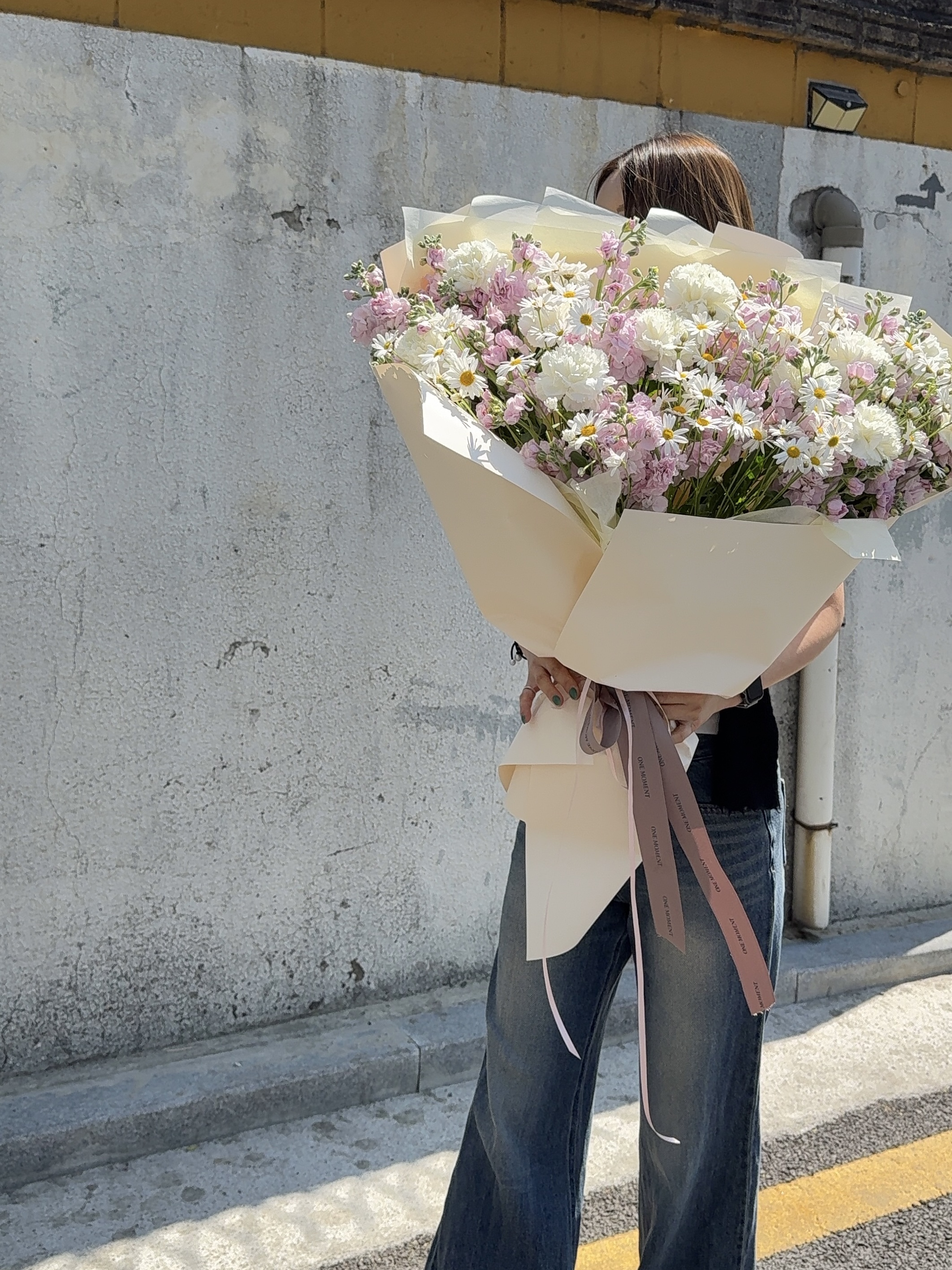 친구 생일선물로 탄생화 꽃다발을 주문했는데 지이이인짜 크고 너무 예뻤어요!!ㅠㅠ💛 정말 사진처럼 몸이 다 가려질만큼 커서 친구가 완전 좋아해서 저도 기분 좋았습니다>.< 다음에 다른 탄생화 주문할게요!