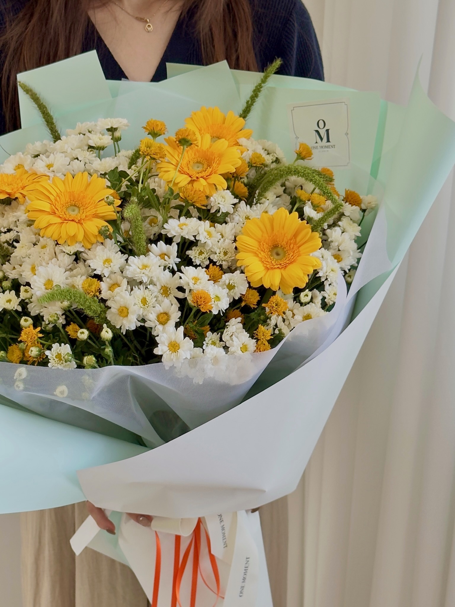 온라인으로 배달시킨 선물들이 매번 부모님들 기대에 못 미쳤는데, 이번에 드뎌 까다로우신 부모님들께서 처음으로 감동받으셨다며 연락오셨습니다. 꽃봉오리 뿐만아니라 꽃대까지도 너무나 길고 싱싱하게 배달되어 왔다네요. 믿고 맏겨도 될 꽃집인것 같아요. 다음번 기념일에도 다시 이곳에 오더할겁니다. 고맙습니다, "1 moment" !!
