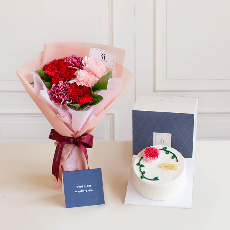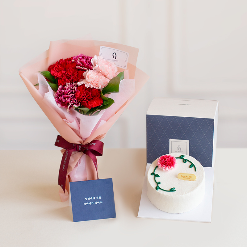 Onemoment's Parent's Day Edition - Carnation Bouquet & mini cake Set